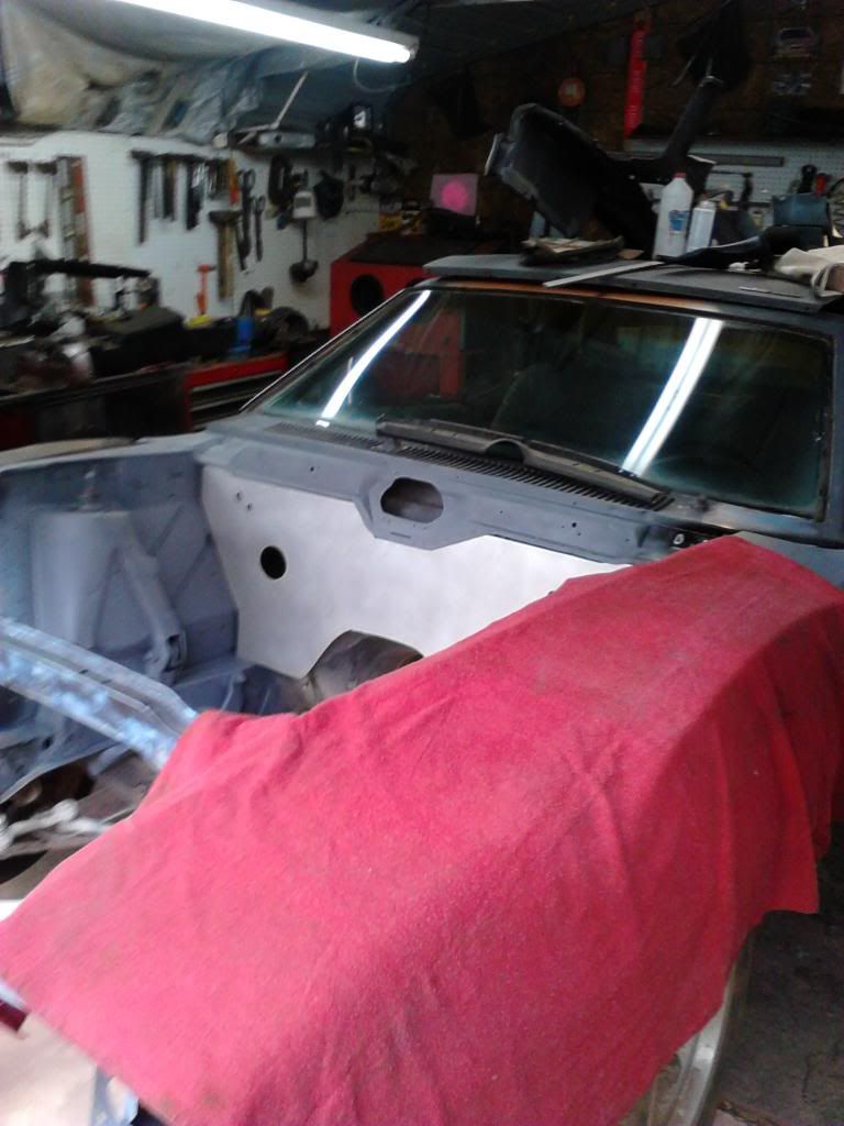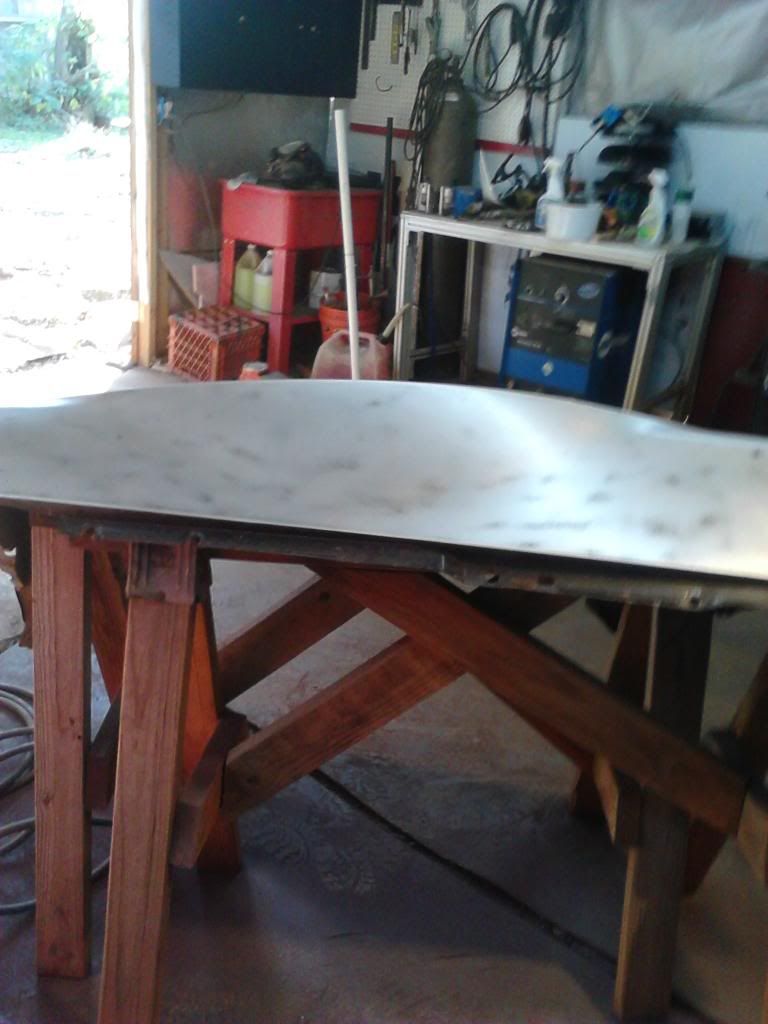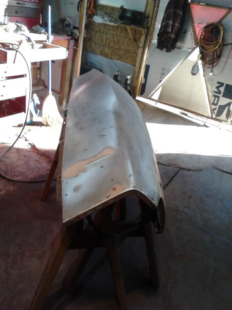Did get her to the bare metal Ran out of sand. So we gave the ole compresser a good work out with the D-A sander and 40 grit paper. Calling for rain tommarow will shoot a lite coat of primer to keep the rust grimlen,s away.