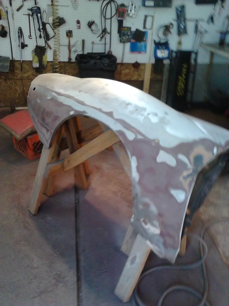 Most of wat ya see here is old body work Ground thru in a few places on the edge of the wheel well will have to tig it up.
