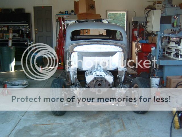 Next was getting the main shell body work done before which included a new firewall for the SBC to have some room. Very little work needed to be done since it was in such good shape. We needed some more room in the rear wheel wells since I went with a wider tire so we added a 2" filler piece the the rear fender (not pictured) which not only moved the metal out but also lowered the wheel well opening to create a lower look. Now the rear fender and front fender share the same width (rear originally narrower) and it looks properly proportioned. We also started doing the chassis work - installed a Mustang II front suspension, rear triangulated four link w/ Ford 9", etc.