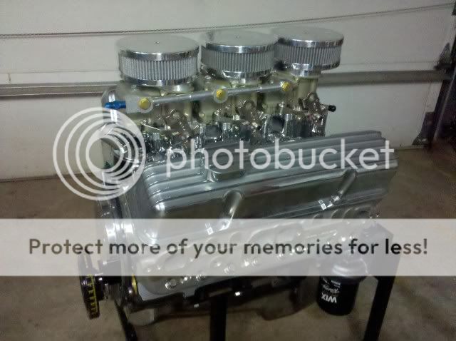 That is a Barry Grant Six Shooter so only the center carb has an idle circuit and the front/rear carbs are the "secondary" with how the linkage is setup (blocked idle circuits). I haven't tuned one of these before so it may be a challenge. Not sure where the linkage is currently at but it will be in the car this winter.