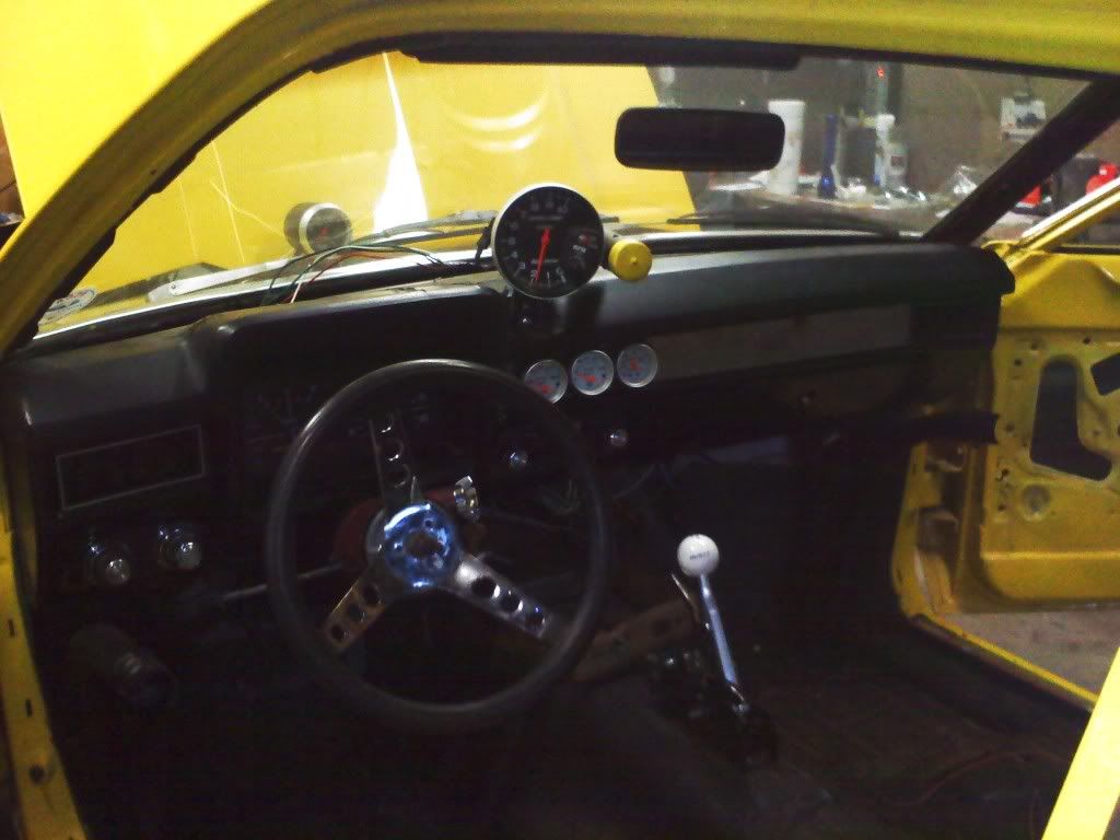 interiror is one big kirkey race seat to fit a wookie In a pinto, passenger seat is 65 mustang bucket, made a custom dash panel to cover up the last owners attempt to put guages in the dash, but Im now planning on using efi analytics Shadow dash software and a 7" tablet in the car.... so need to make a mount for that...