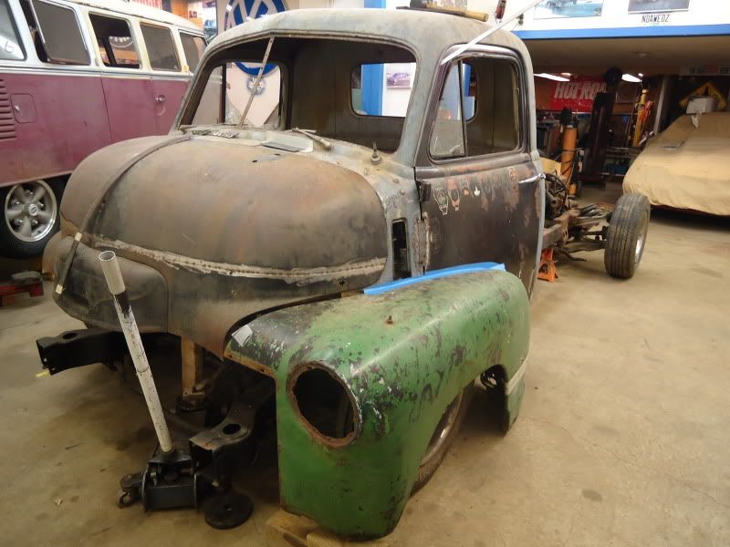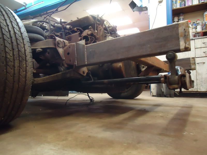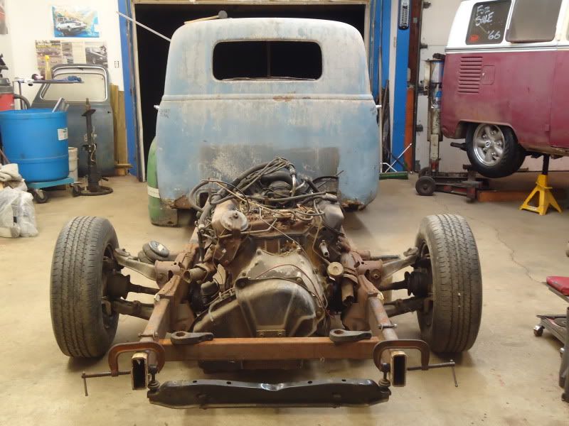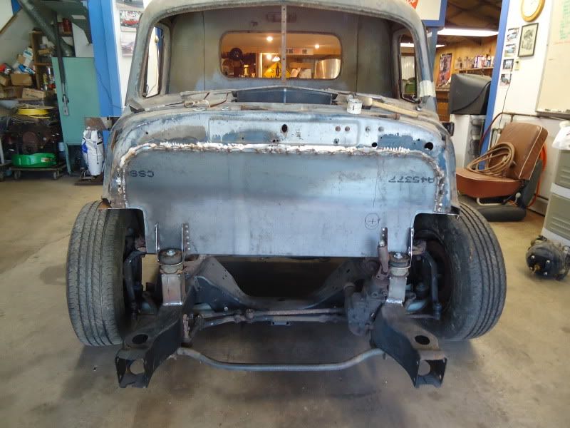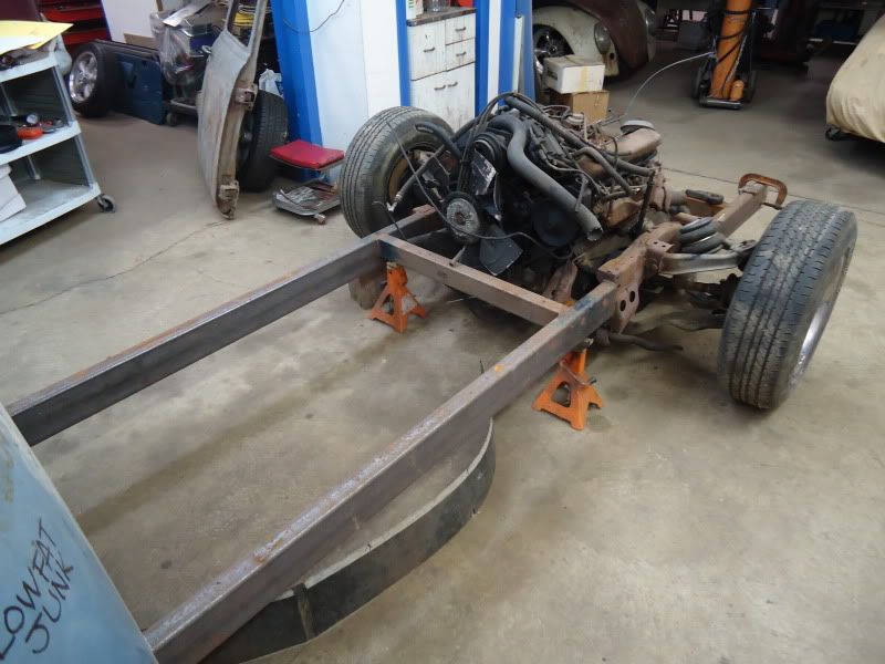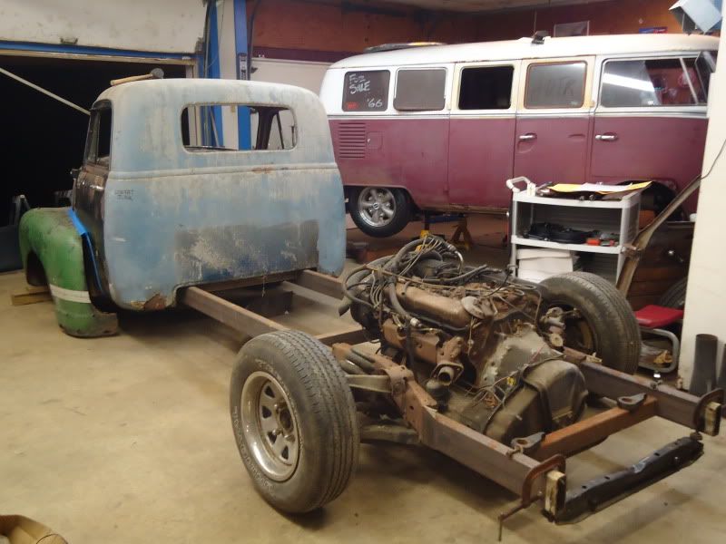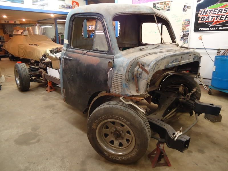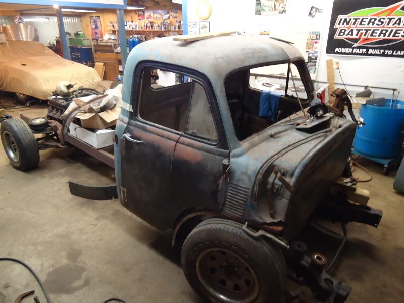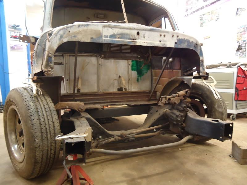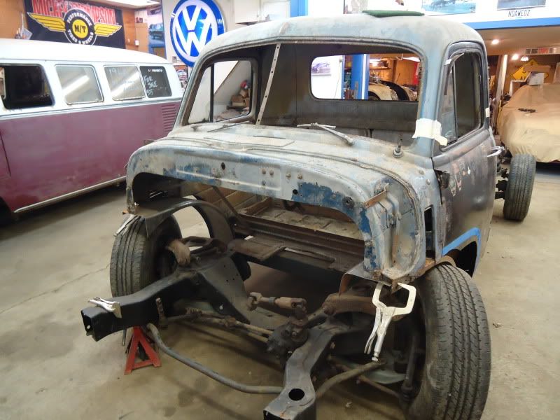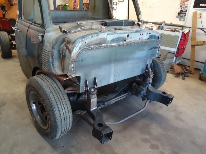 Cab now mounted. A Dodge truck gave up its radiator support mounts at the picnpull..steering and brake booster next.