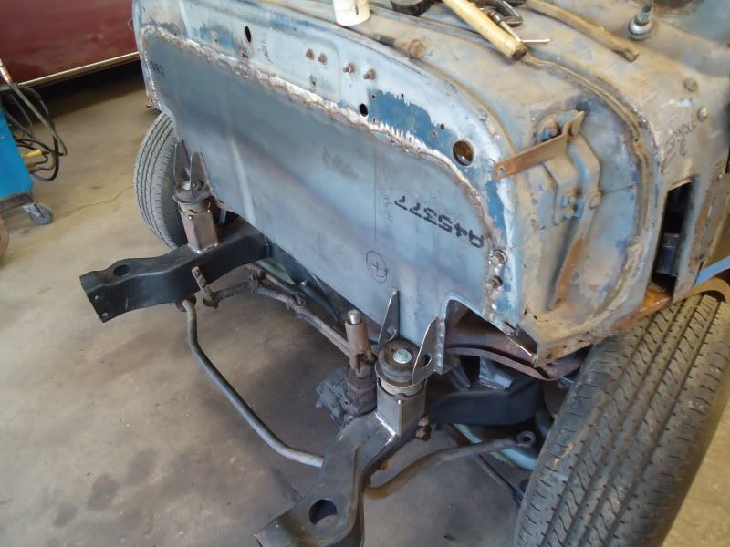 Once the firewall is in place, I can build the front mounts for the cab to mount it where it needs to be. The welded doors are basically holding the cab in place as well as struts inside the cab. Yes those are trailer fenders for inner fenderwells.