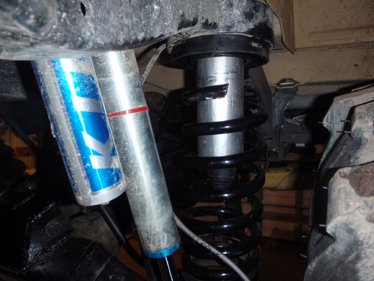 so I added a 2" spacer for a bit of insulation from noise and put it back together... now I have 5" travel (middle of the travel) for the rear and the rig is dead level front/back