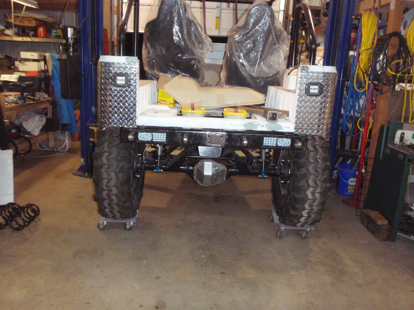 body back on, I could attach it, but it's so much easier to paint it on my body-dolly that I'm going to wait for it to show up back on my doorstep and finish some more of the minor stuff... like the tire carrier and rear tail gate....