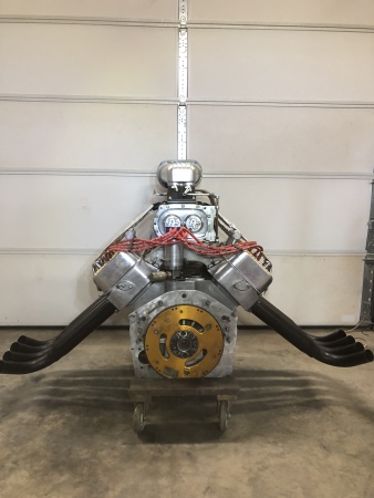 This particular engine is awesome because it is blown, runs on an 85% load of nitromethane and the block has never been wrecked and repaired. This is a rarity because it is among the first hundred and ten of the things ever made. Topped with a 6-71 blower and equipped with zoomie headers, this would be a great engine to stuff into an altered, a funny car, or some sort of freakshow door slammer.