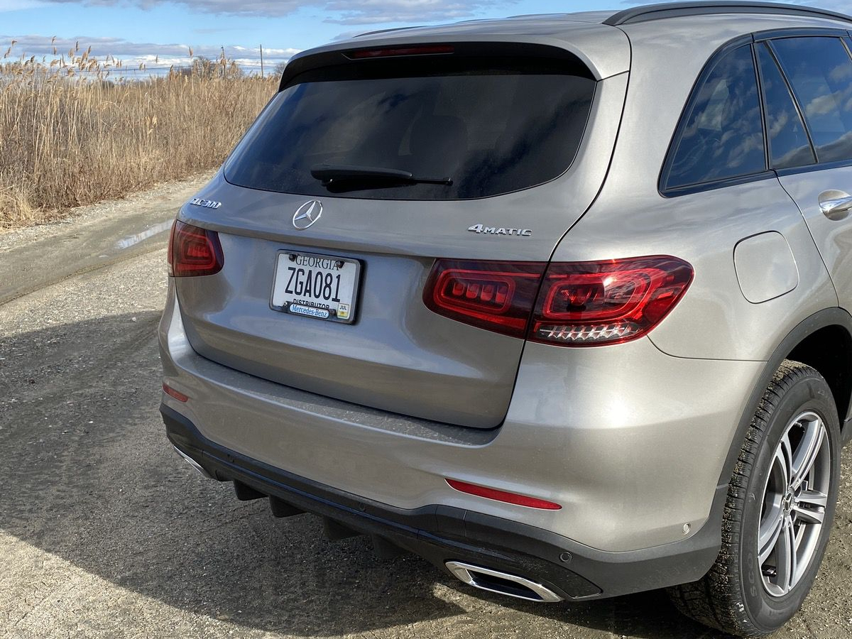 Styling-wise, the GLC 300 does not really deliver a whole lot of visual pop. We thought the plastic body cladding along the rockers and wheel wells took away some of the luxury image from this vehicle. This is stuff you see on Mazdas, not what we’d be looking to have if we were showing folks in the neighborhood that we could afford to have something with the Mercedes logo on the front of it. The GLC 300 does what all small SUVs do, it blends into the sea of them that populate every parking lot and traffic jam in America. We did like the wheels. Those we’re giving a thumbs up to. After that? Not mucho note on exterior styling in our book.