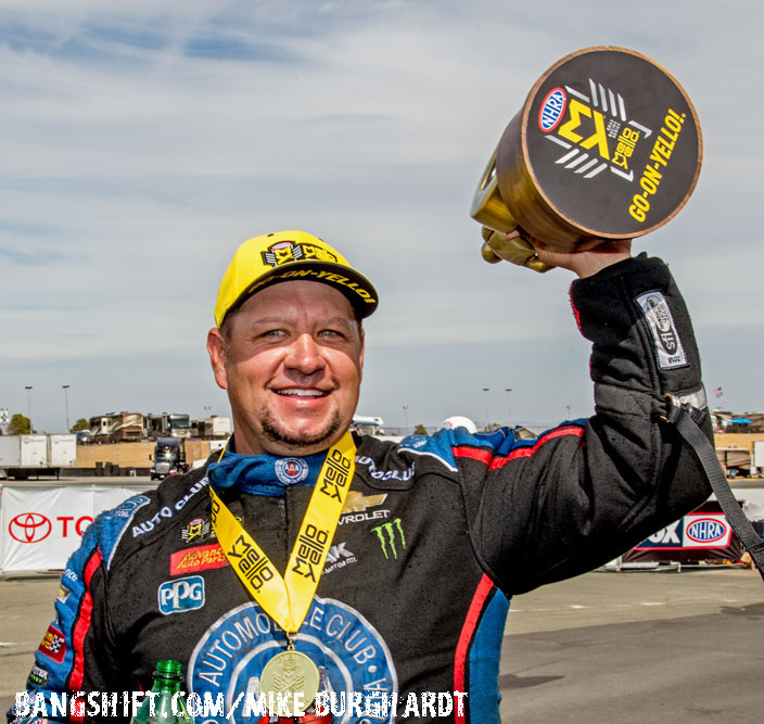Robert Hight in Funny Car, Jeg Coughlin Jr. in Pro Stock and LE Tonglet in Pro Stock Bike were also winners in their respective categories at the 15th of 24 events on the 2018 NHRA Mello Yello Drag Racing Series schedule.