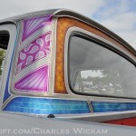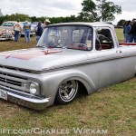(Photos by Charles Wickam) – From 1961-1963 Ford produced a truck that is commonly referred to by hot rodders today as a “uni-body” truck. While this isn’t entirely accurate because the truck did have an actual frame under it, it does properly describe the fact that the entire body of the truck was one piece. Originally conceived as body a styling upgrade, bed space upgrade, and production efficiency upgrade, the trucks quickly fell out of favor with the driving public when stories of their bodies flexing under load started to make their way into the public consciousness. By the middle of 1962, Ford was scrambling to get a production line running for traditional “cab and box” trucks. They were so desperate that they sent the late 62/early 63 trucks out into the world with the same bed used on 1960 models! Ford quickly ceased production of the one piece bodies and that was that. Sadly, they were known to rust faster and worse than “regular trucks” and relatively few exist today. Of those “relatively few” we have seen some awesome examples of “uni-body” Fords turned into cruisers and customs, but this one built by Missouri’s Ryno Built Hot Rods and Customs is our favorite by a country mile. Charles Wickam shot these photos recently and we wanted to share them with you along with some additional information on a truck that Ryno himself built virtually all aspects of….insane panel paint included.