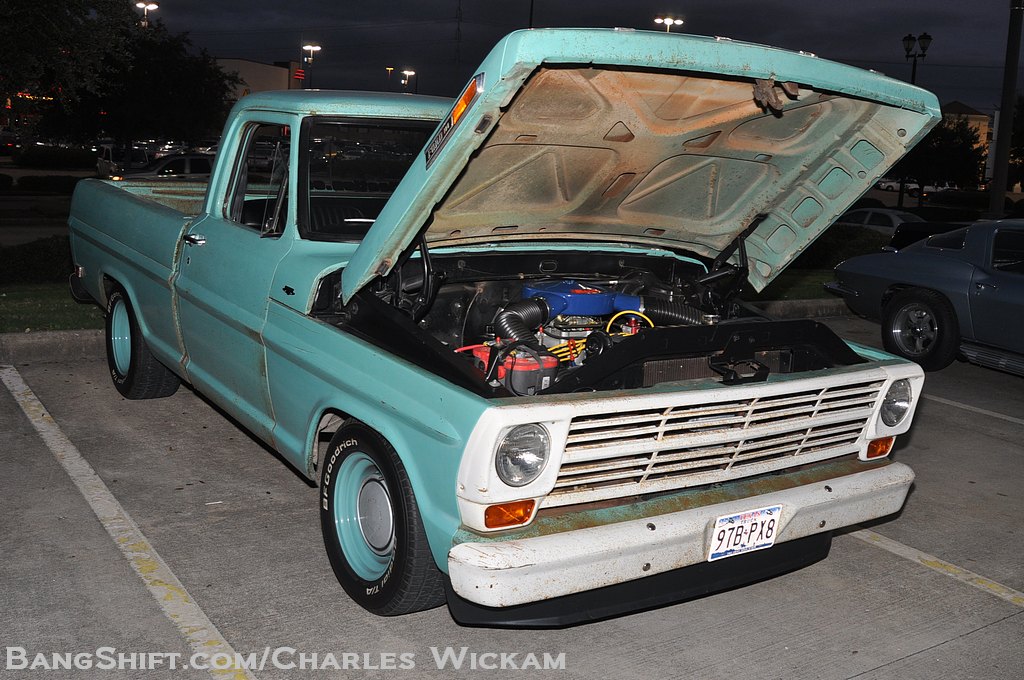 (Photos by Charles Wickam) – Otto’s BBQ is a Houston landmark. Opened in 1951, the place has been feeding the area some of the best Texas-style BBQ for more than 60-years. Charles Wickam headed over to check out a long standing cruise night and maybe grab a bite. (He says he was there for the cars, but we know that the man has a nose for BBQ!). What he found was a great group of hot rods, trucks, muscle cars, and late model high performance iron all mingling among one another in the parking lot. There’s a ’69 F100 Ford that we’d harm someone to own and the slightly frayed and awesome Firebird below is a winner, too. There a bunch of photos of the ‘Bird in the gallery, so check ’em out!