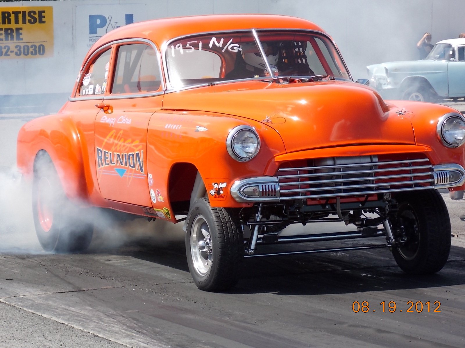 That’s what they say anyway! We believe them, and thanks to Tim Ostrander we’ve got some photos from last weekend’s Empire Nostalgia Gold Cup to share with you. The vast majority of stuff that shows up in most certainly period correct nostalgia drag cars, although a few 60’s muscle cars sneak in as well. Empire Dragway, in Leicester, New York, is the home of the Gasser Racing Series, and they put on a great show. Our favorite has to be the nose high orange 50’s Chevy and the blue ’55, but let us know which one you would want to slide into your garage. Cause who are we kidding, we’d take pretty much any one of them. With 9 events in 2012, the Gasser Racing Series puts on one hell of a show, with the Gold Cup being their version of the US Nationals.