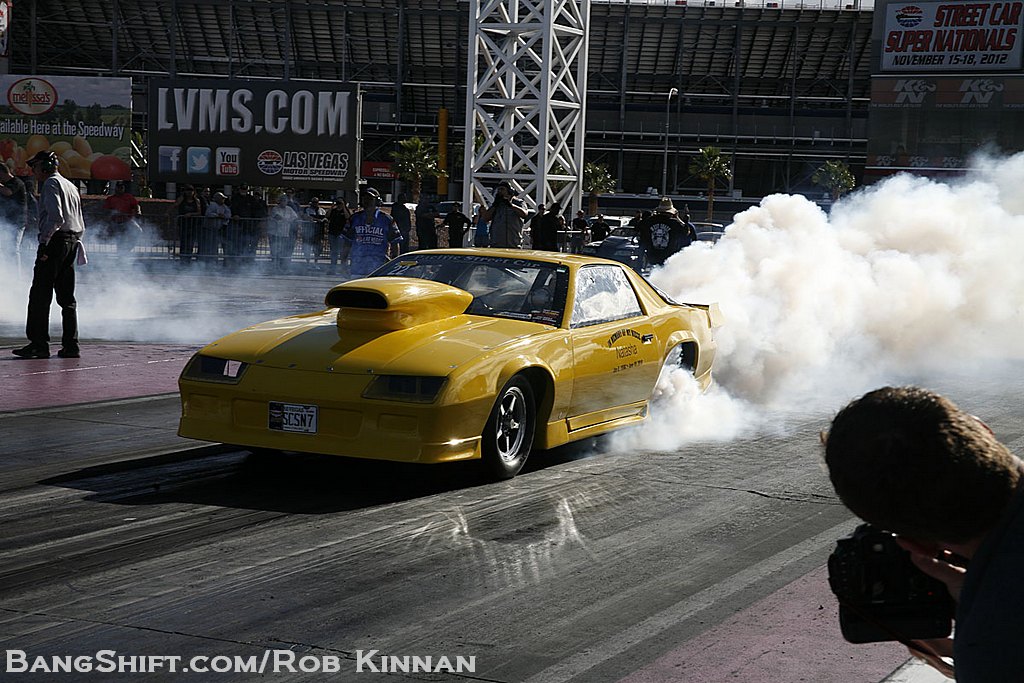 (Photos by Rob Kinnan) – If you missed our live streaming broadcast of the 2012 PSCA Street Car Supernationals you failed to see one of the great door slammer drag races of all time. ET records were set and reset, Al Jiminez became the first racer to run more than 200mph on a damned leaf spring, a fist full of cars went into the 5.70s (quarter mile), and a great time was had by all. Rob Kinnan (yes, THAT Rob Kinnan) was on the scene for BangShift all weekend long blasting photos. We took his great shots of action, pits, and thrash stuff, made them into a couple of galleries, and now we post those below for you.