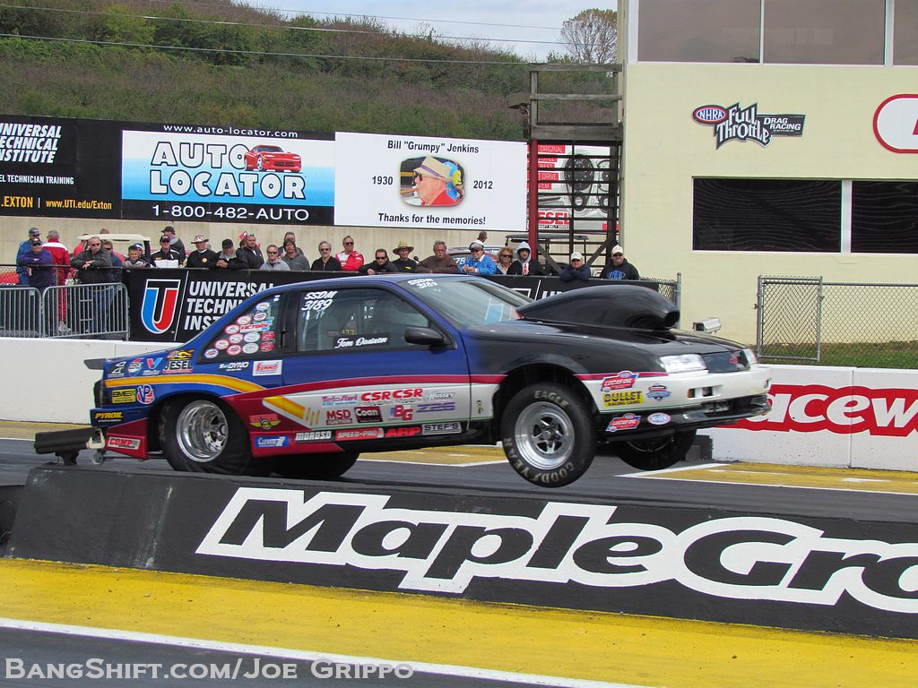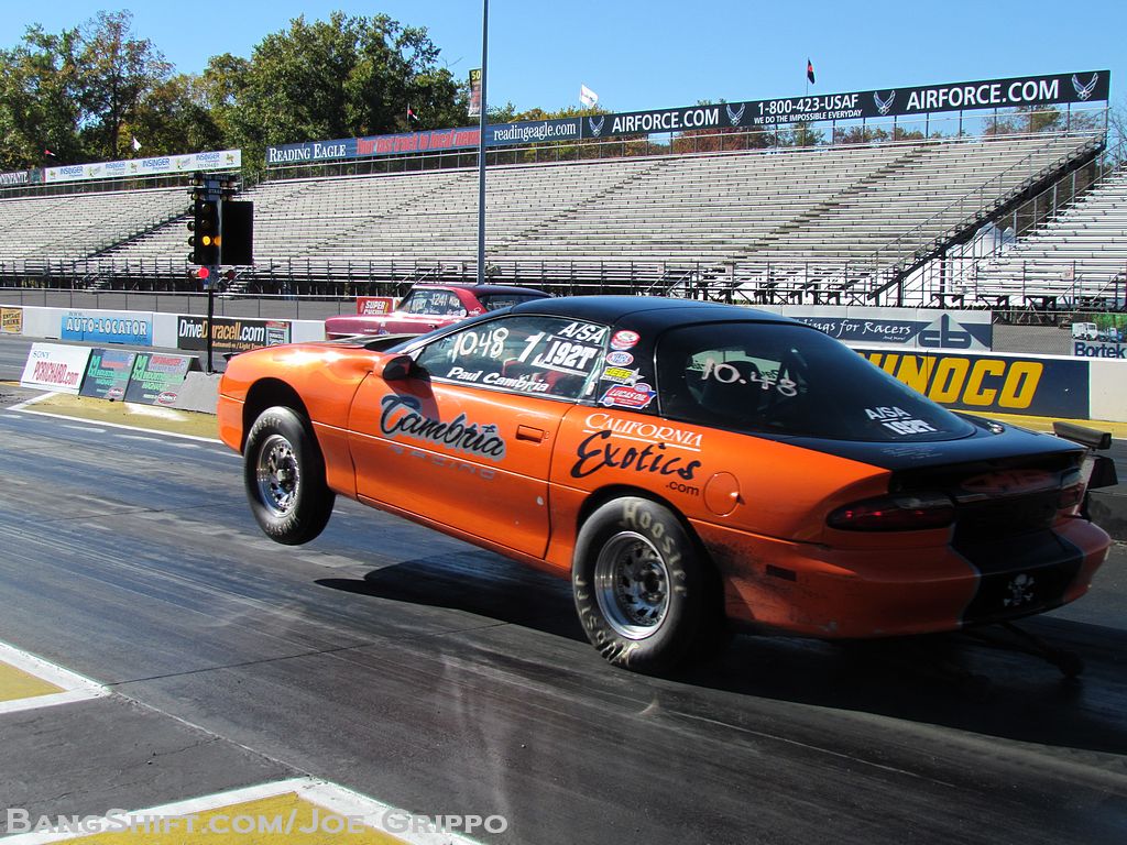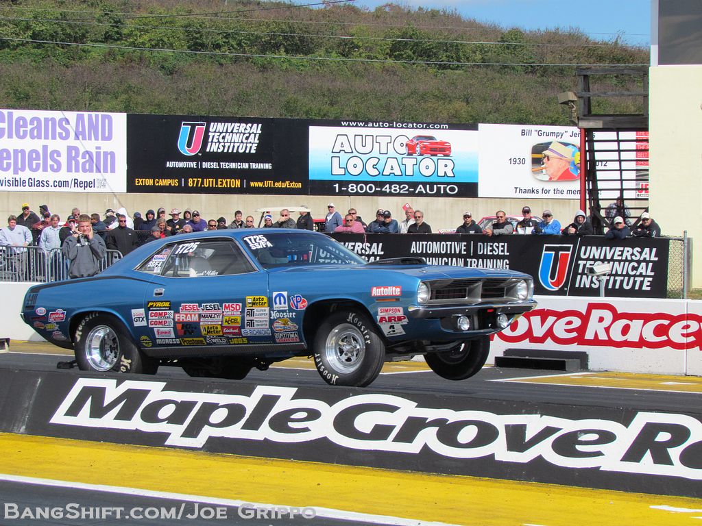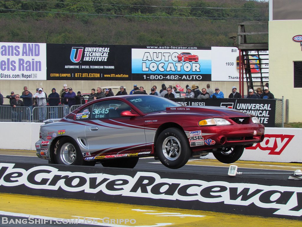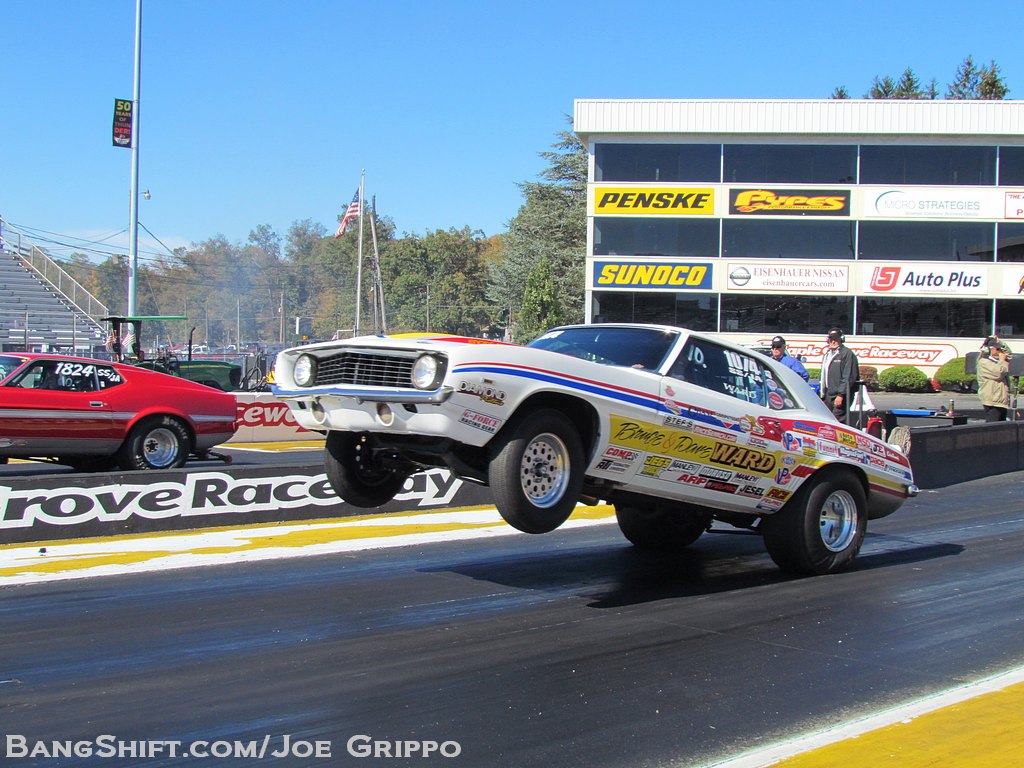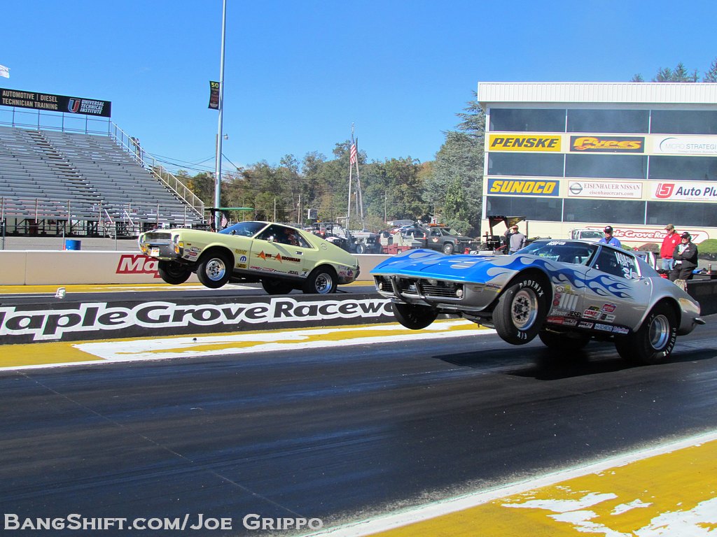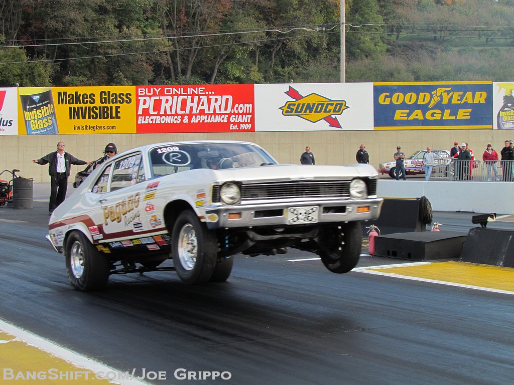 (Photos by Joe Grippo) – We will make one guarantee with this gallery. In every single one of the 116 photos, at least one of the cars in the frame is hiking the front end up to the sky. Joe Grippo was at the vaunted Dutch Classic held each year at Maple Grove Raceway last weekend and he send over hundreds of awesome photos. We’re starting out the gallery fun with this collection of wheelstand photos that feature the stock and super stock classes primarily.