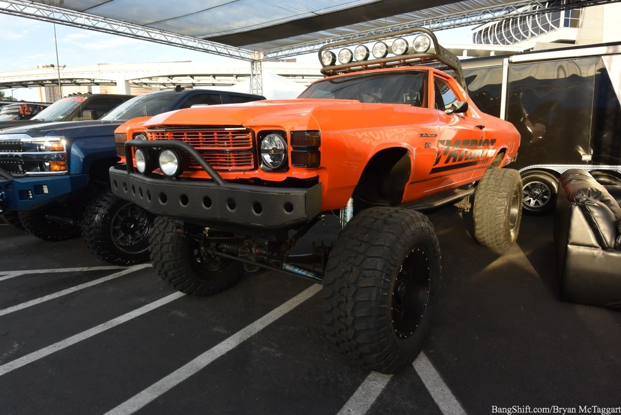I’ve been to Las Vegas enough to know that even when you don’t get completely and utterly drunk and blackout that weird shit can happen. From the six-foot-five rental car agency clerk lady, who has biceps as big as my head and a name like “Chanteuse”, to guys in Iron Man suits walking up and down The Strip trying to dance with tourists, Vegas conjures up weird imagery. I’ve stood in line with a guy dressed up as a demon to use the can, have seen strippers club dancers beat the hell out of each other on the monorail, and have seen every form of motorized item out there rolling around. If anything, you would think that SEMA would be a fairly tame location: it’s all about cars. There is no surprise seeing an Aventador on expensive wheels…it’s actually expected here. But there will always be a few things that stop you in your tracks and leave you a little stunned. Check out some of our finds below, and let us know what you think: