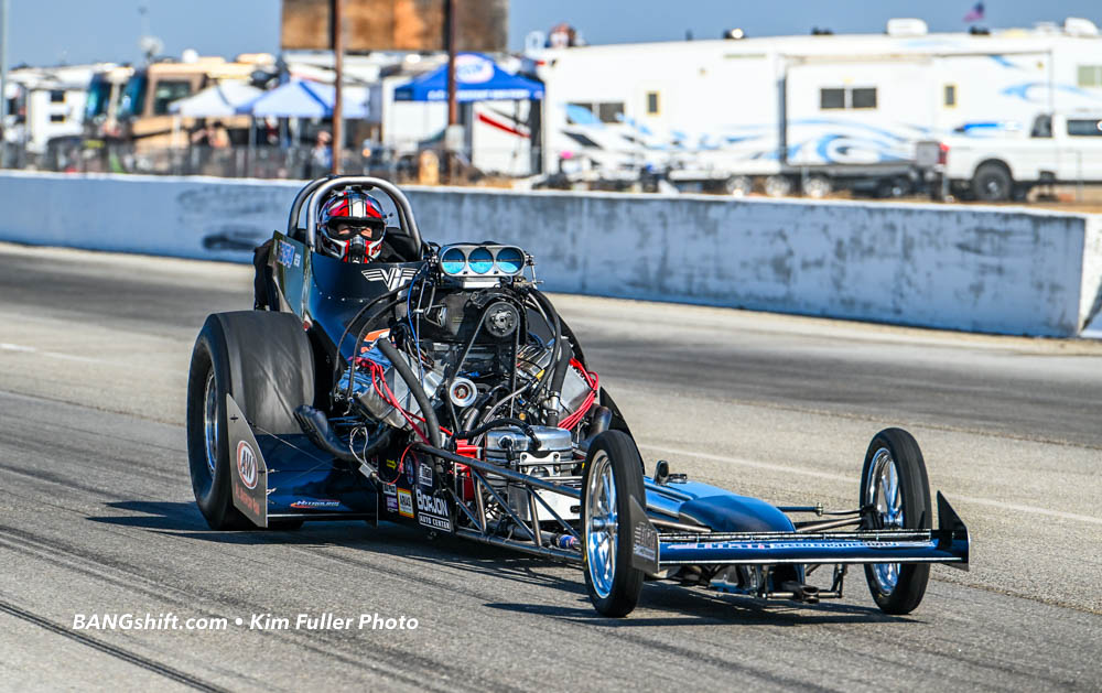 (Photos by Kim Fuller) • Pete Kaiser wrapped up the NHRA Hot Rod Heritage Series season in style, claiming Top Fuel honors at the California Hot Rod Reunion, presented by Good Vibrations Motorsports at Famoso Dragstrip in Bakersfield. The veteran driver powered to the event victory Sunday at Famoso, but his effort wasn’t enough to overtake Tyler Hilton, who secured the series Top Fuel championship by two rounds.