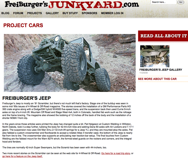 You can go to the full list of project cars, or you can see each one in more detail by clicking on your car of choice. As an example, here’s the new page that we just created for my Jeep.