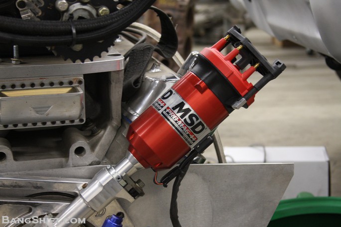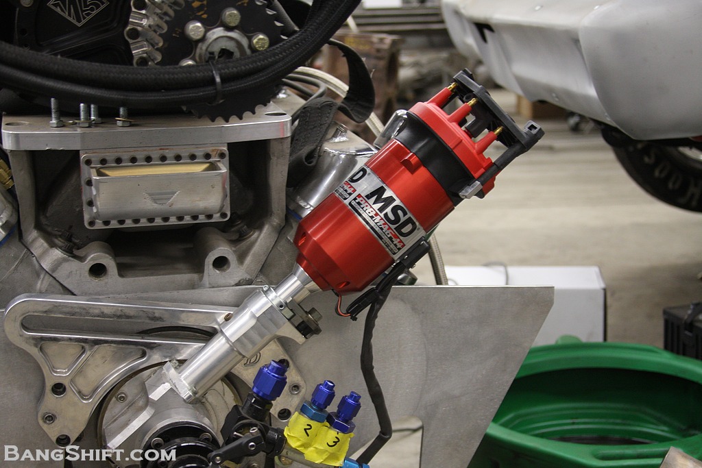 On the speed parts front and as you’ll see in the gallery, an MSD 44 amp Pro Mag arrived and has been mocked onto the engine. There are welders out there that don’t put our 44 amps. All of that firepower will be needed to light off the heavily compressed load of methanol that will be heading into the cylinders of the KB Olds based engine that the car will be powered by.