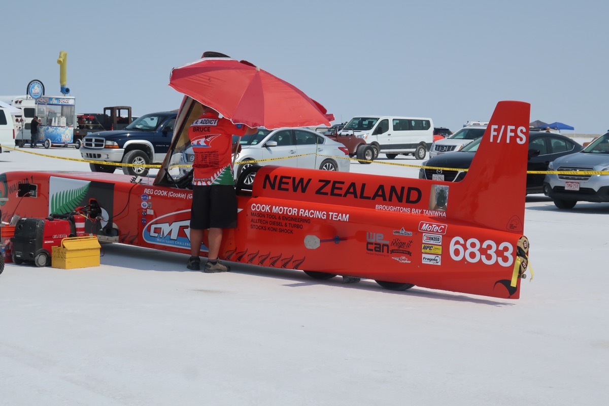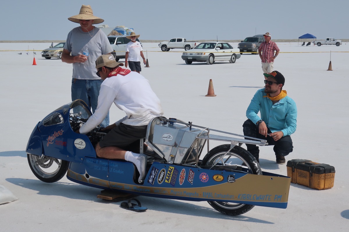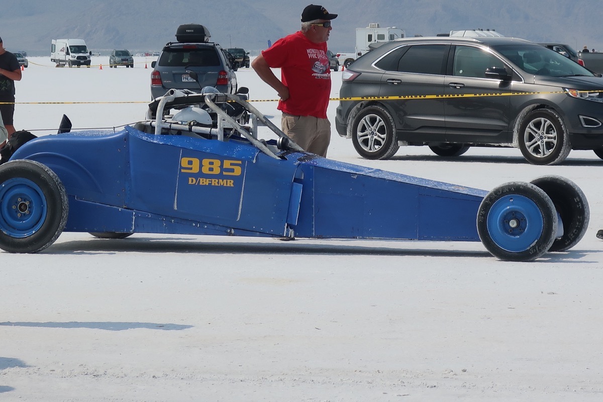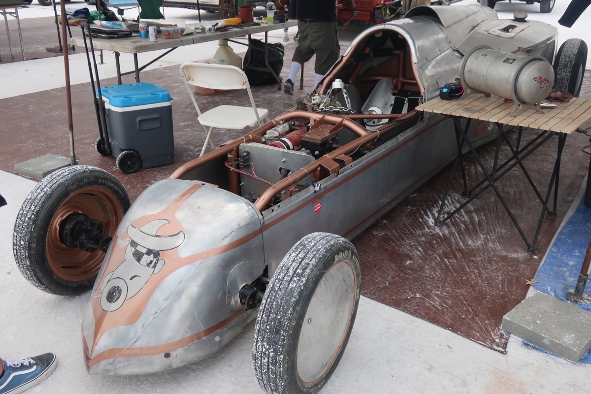 Speed Demon just went faster than Danny by 1 MPH. The Demon car now has the top time of the meet so far. The car is in impound to back up the record run Tuesday (tomorrow) moring. Word is they’re going to kick up the boost for an even higher speed. The Demon car has had the top time a Bonneville for the last 7 years. It was the first car off the line and have made 7 runs so far. How come you guys haven’t posted any photos of Speed Demon? Maybe tomorrow?