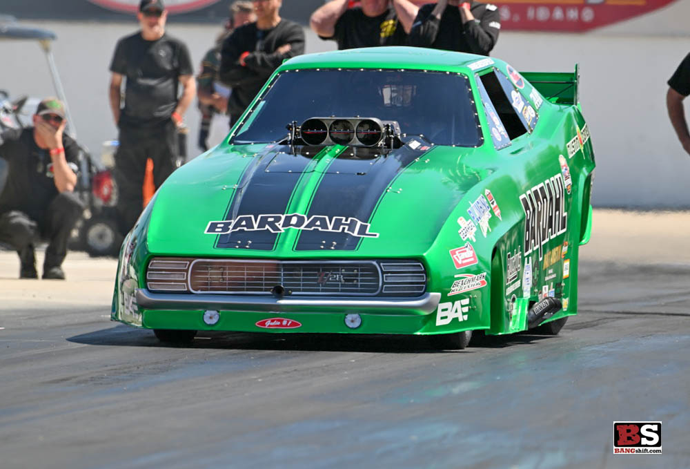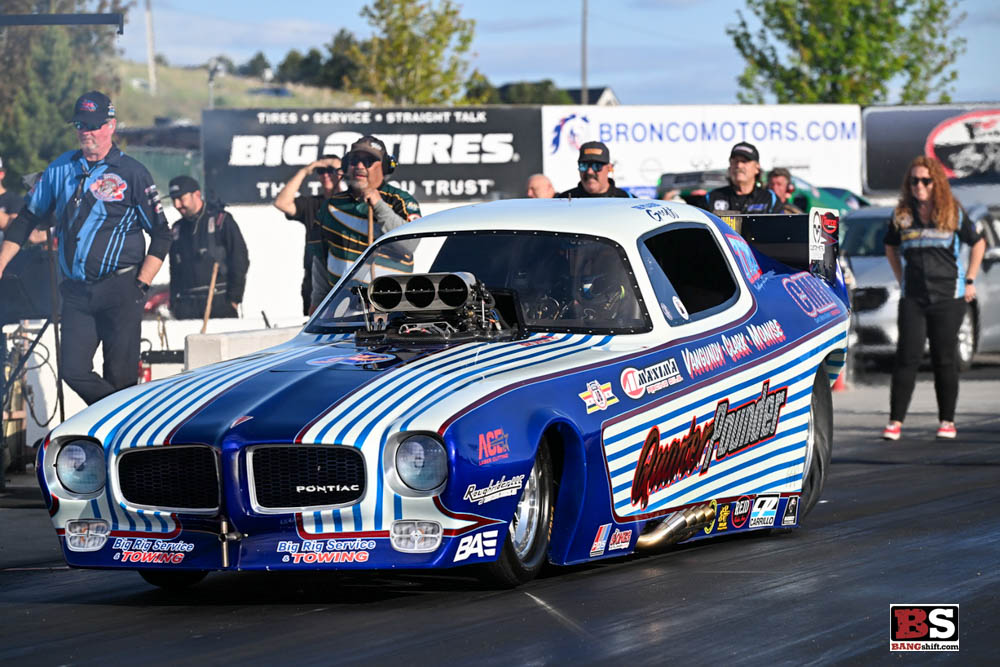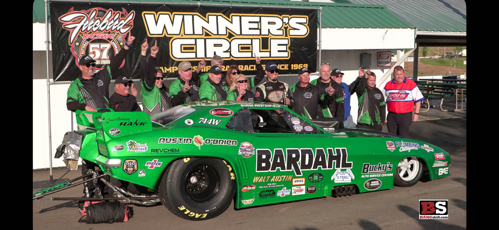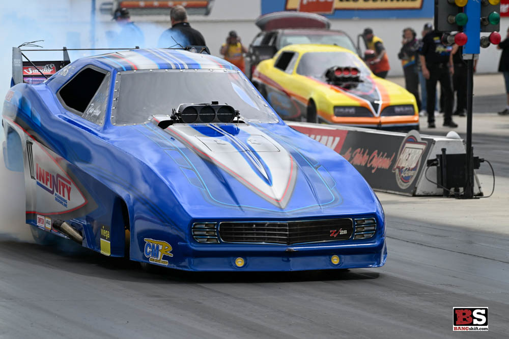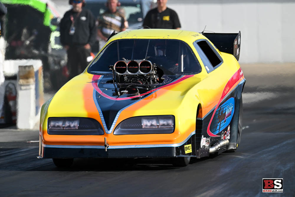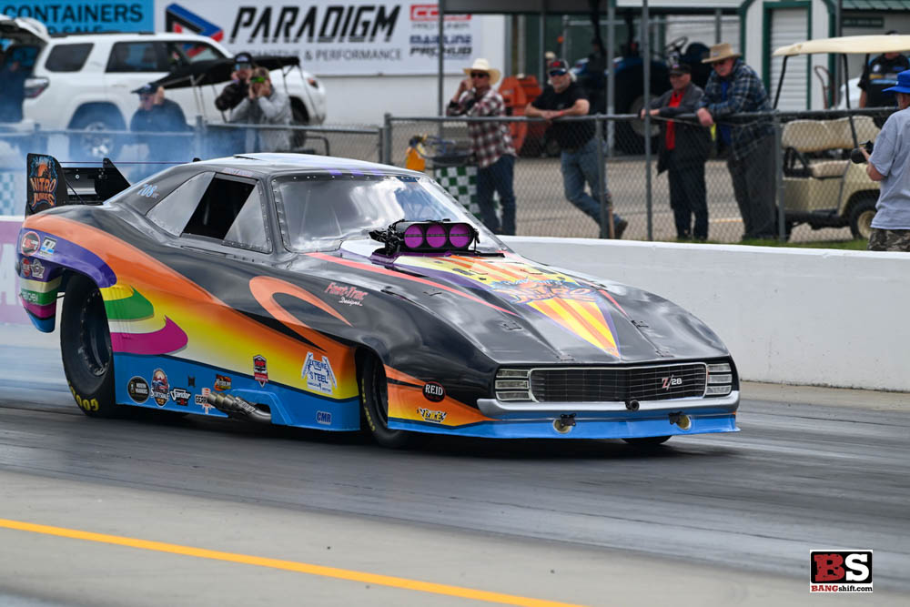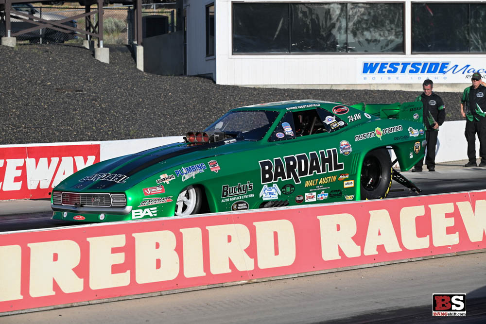 The perennial Bardahl green funny car has met the parity of the ultra-competitive Heritage Series Nitro Funny Cars this year. In the Final Round, the Austin & O’Brien Camaro stormed to the low elapsed time of the meet with a 5.546 at 262.44 mph, dethroning reigning Ignitor champ Nathan Sitko in the Ron Hodgson-owned Bubble-Up Firebird tuned by Jim Basko, who clocked a 5.635 at 258.47 mph. Westerfield’s second round 263.46 MPH blast set a new Firebird Raceway track record.