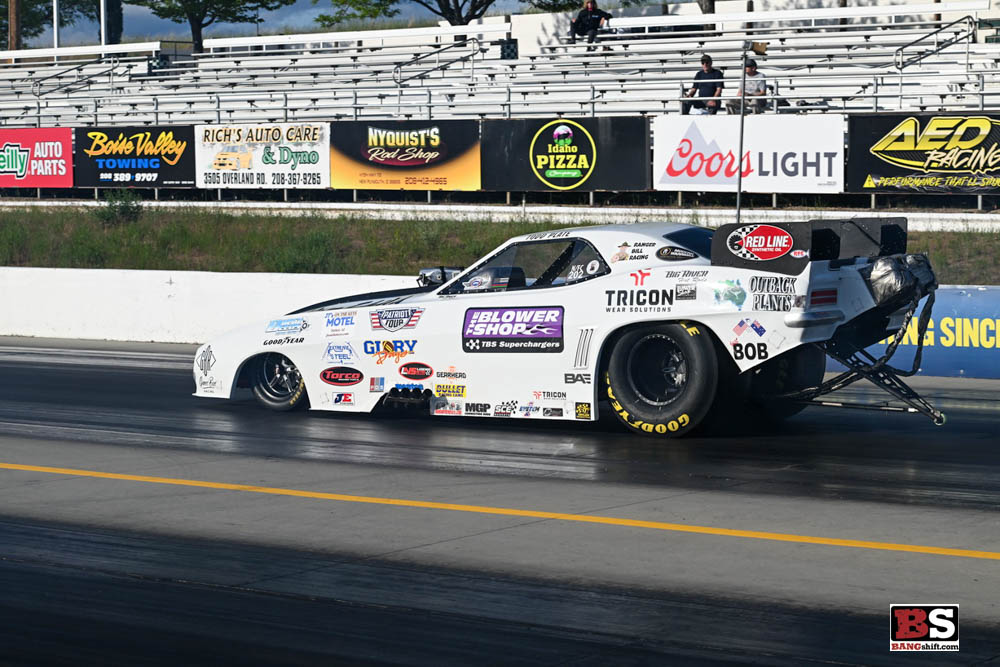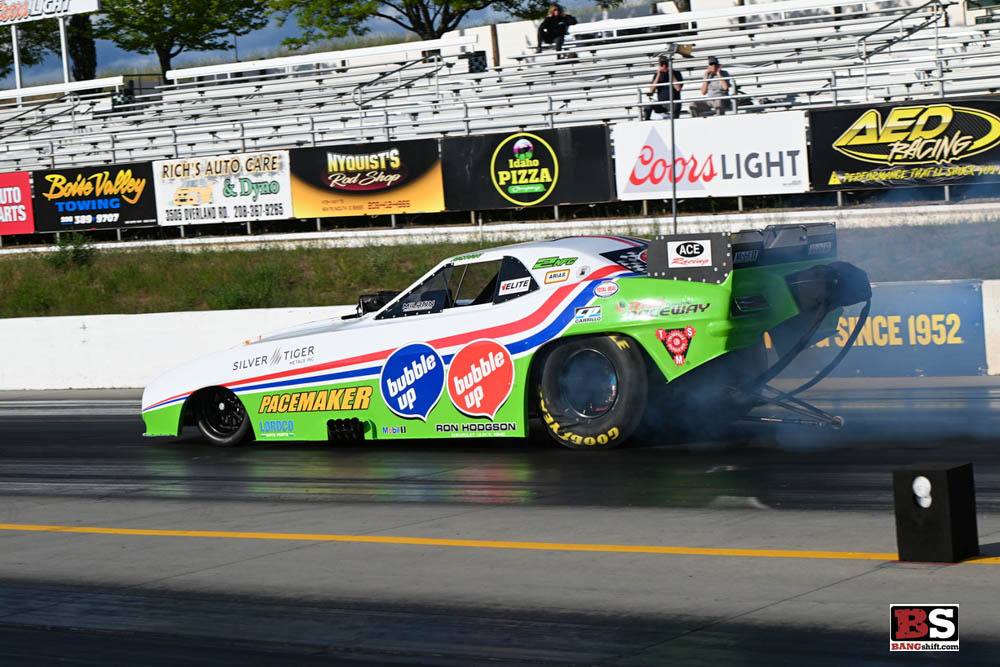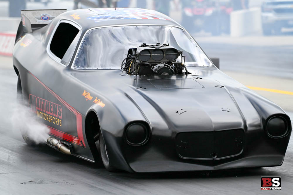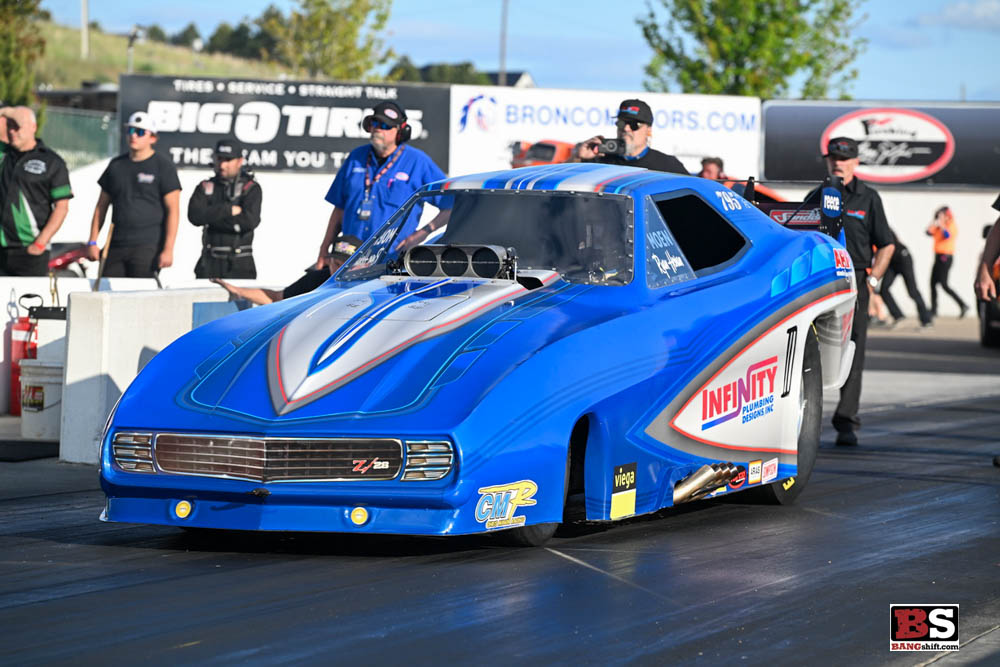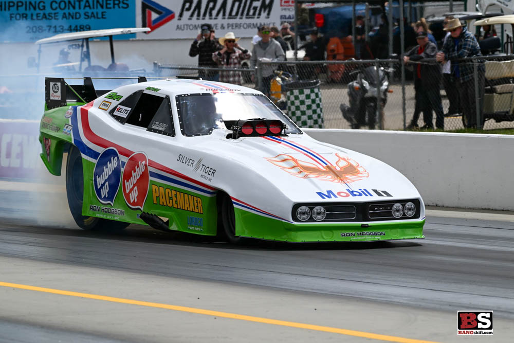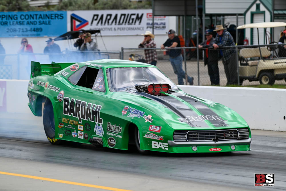 The perennial Bardahl green funny car has met the parity of the ultra-competitive Heritage Series Nitro Funny Cars this year. In the Final Round, the Austin & O’Brien Camaro stormed to the low elapsed time of the meet with a 5.546 at 262.44 mph, dethroning reigning Ignitor champ Nathan Sitko in the Ron Hodgson-owned Bubble-Up Firebird tuned by Jim Basko, who clocked a 5.635 at 258.47 mph. Westerfield’s second round 263.46 MPH blast set a new Firebird Raceway track record.