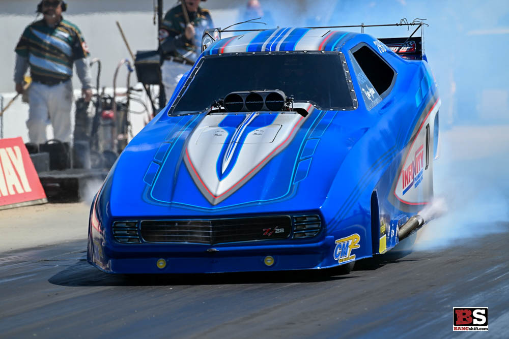 (Photos by Kim Fuller) • While the “Northwest Hitter” nitro funny car won the ARP Quickest Nitro Car at the recent Good Vibrations March Meet, the first three events in 2025 for NHRA Heritage Nitro Funny Cars were not in the cards for the Washington-based team. This year Jon Capps defeated a red-lighting Westerfield at Famoso in the March Meet final, Derrick Moreira defeated Westerfield on a holeshot at the Pomona Winternationals and Ryan Horan beat past world champ Bobby Cottrell at the Arizona Nationals.